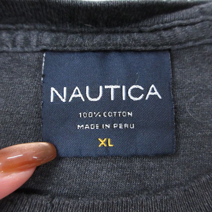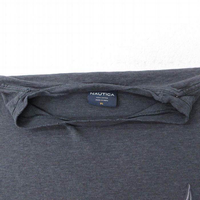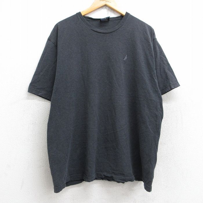 【商品名】 XL★古着 ノーティカ 半袖 ブランド Tシャツ メンズ ワンポイントロゴ 大きいサイズ コットン クルーネック 濃グレー 霜降り