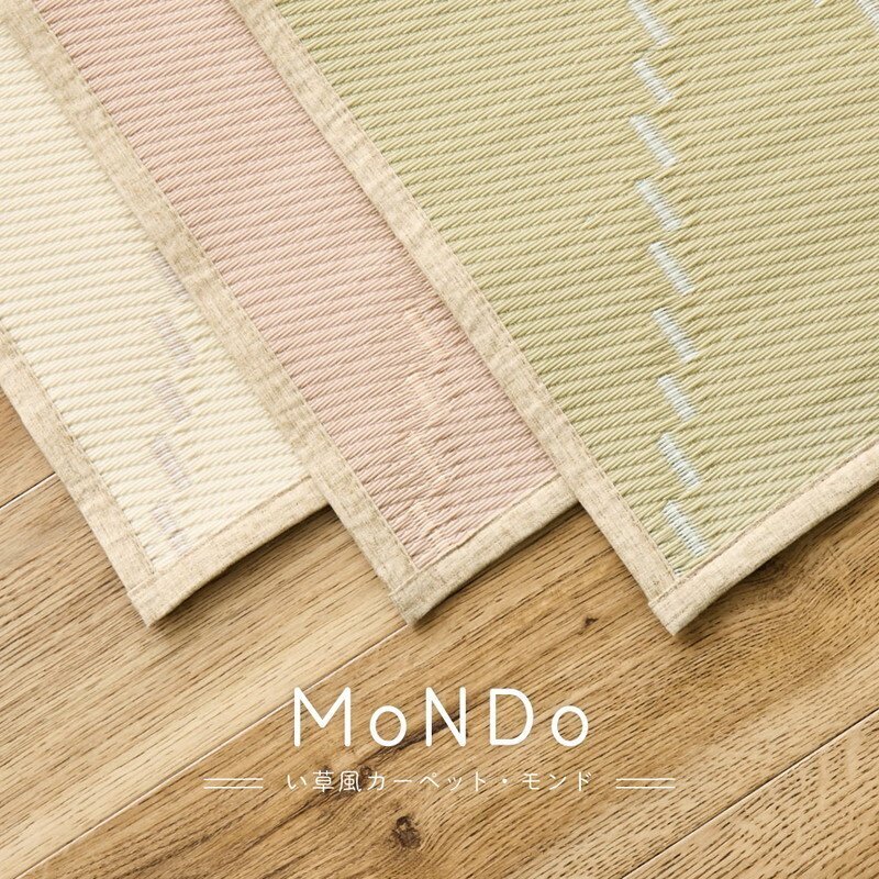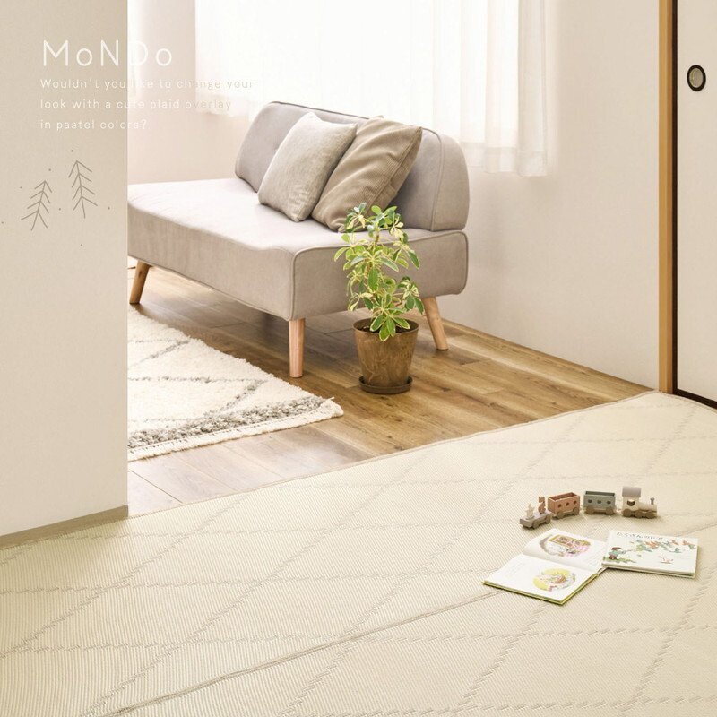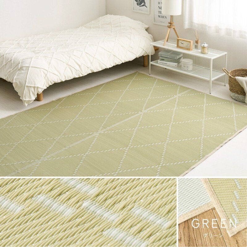 | 即決可@新品洗えるい草風カーペット 柄上敷き 裏なし 「モンド」グリーン/江戸間3畳 | ||||||||||||