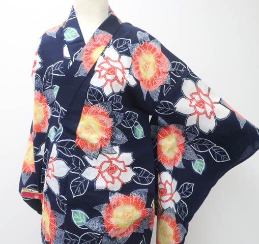 肩当て、居敷当て付きです。 リサイクル商品のため、所々に点シミ汚れがございますが着用可能なお品です。 地色は紺です。 1枚目の画像が近いお色かと思われます。 素材は綿です。 |