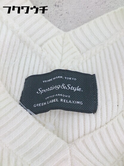 ◇ green label relaxing グリーンレーベル UNITED ARROWS Vネック 長袖 リブ ニット セーター アイボリー レディース