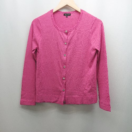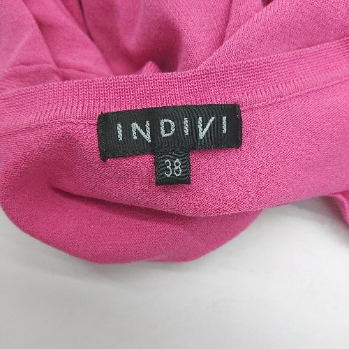 ◇ INDIVI フロントボタン 薄手生地 ラウンドネック 無地 長袖 カーディガン サイズ38 ピンク レディース E