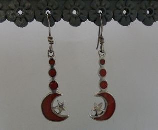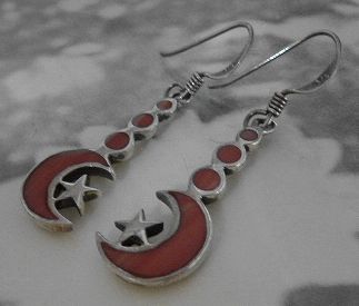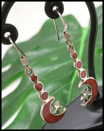 シルバー925銀ピアス コーラル埋め込みムーンスター 2個セット/silverアクセALL50%OFF