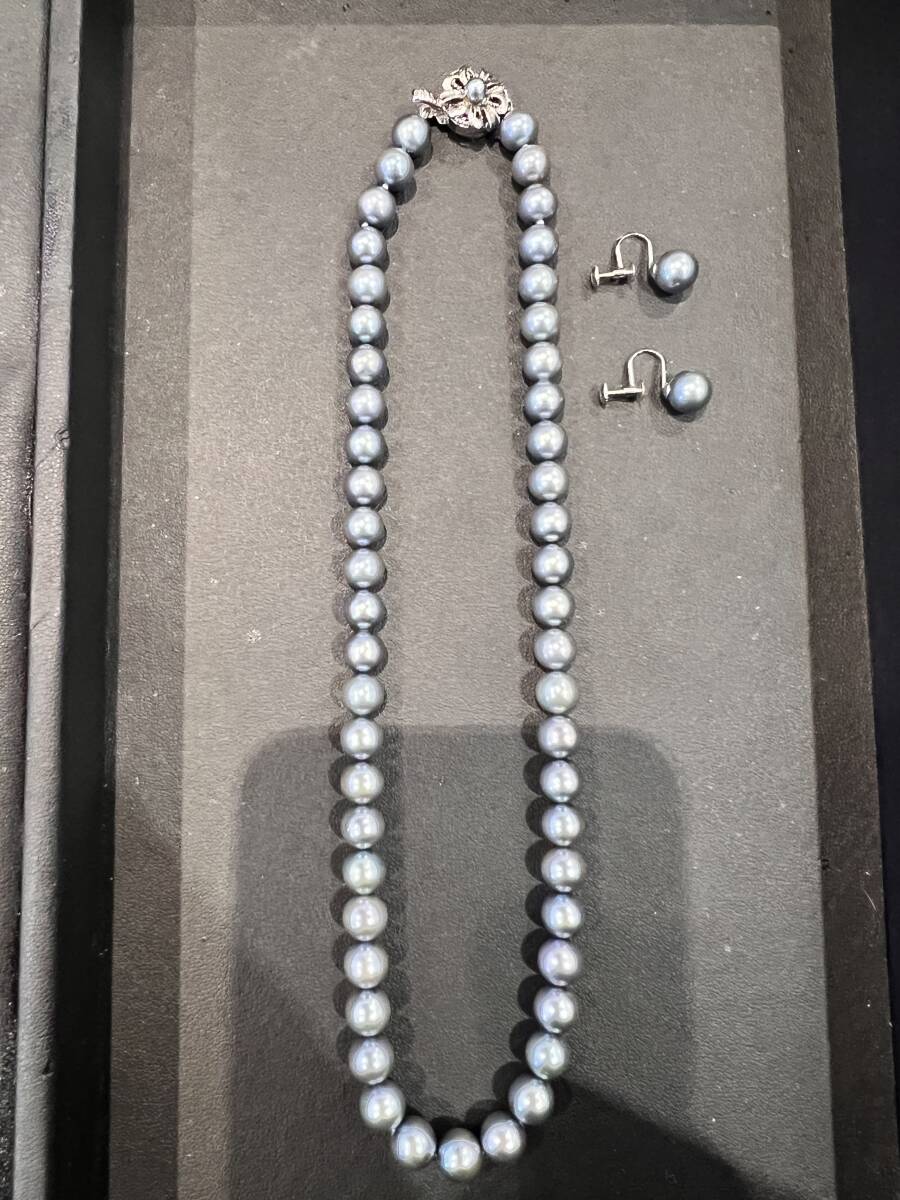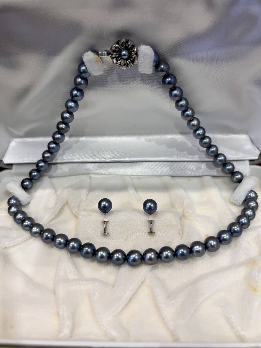 シックな黒色グレー系の本真珠を使用したネックレスとイヤリングのセットです。