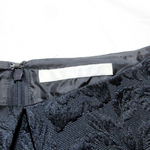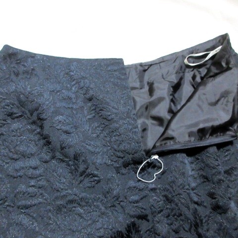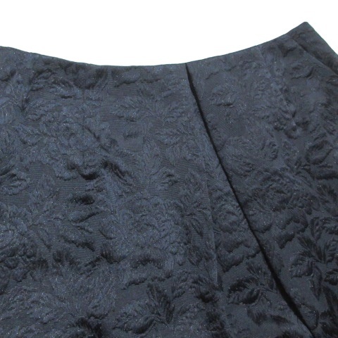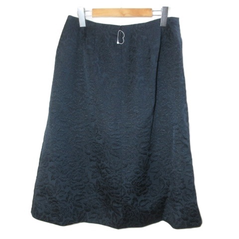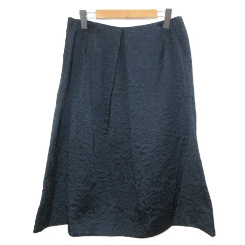 ナチュラルビューティー 美品 19AW 大きいサイズ ジャガードスカート タックフレア ミディ丈 ラメ 花柄 13 LL相当 紺 ネイビー /X