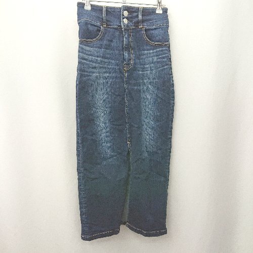 ◇ Θ AZUL BY MOUSSY ハイウエスト デニム風 ロング タイト スカート サイズM ブルー系 レディース E