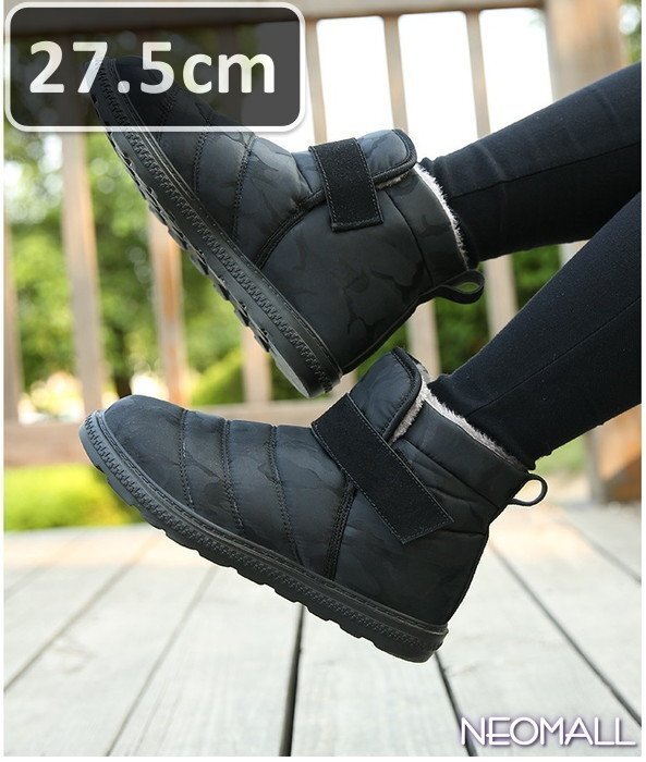 ユニセックス スノーシューズ 【870】 27.5cm 迷彩ブラック ムートンブーツ スニーカー ウィンターブーツ 裏起毛 防水 防寒 防滑 冬用靴