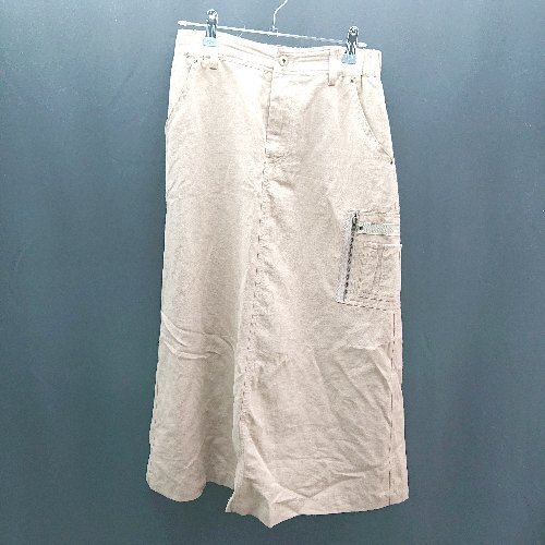◇ FENNEL ウエストゴム プリーツ ベルトループ カジュアル ロング丈 台形 スカート サイズ38 ベージュ レディース E