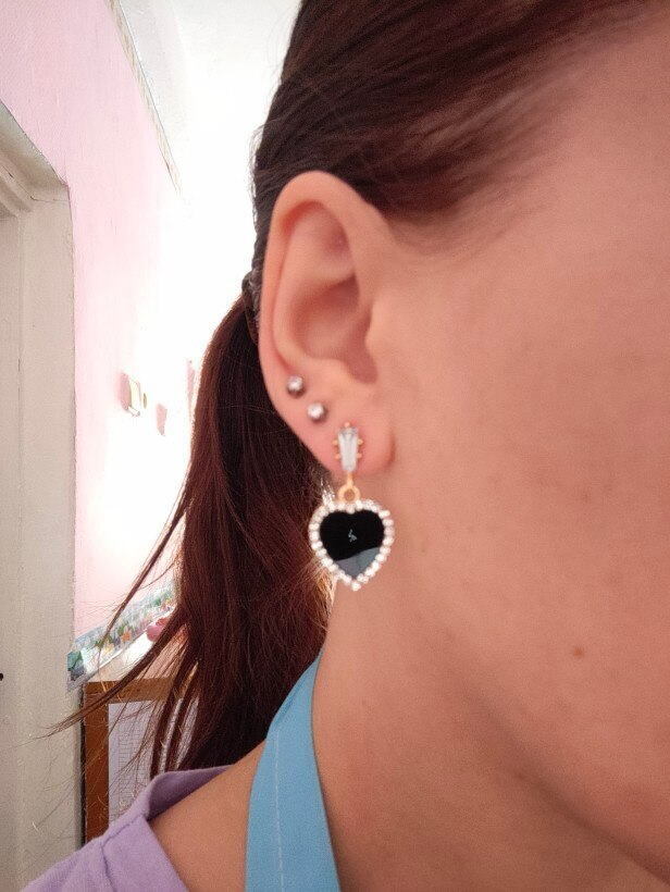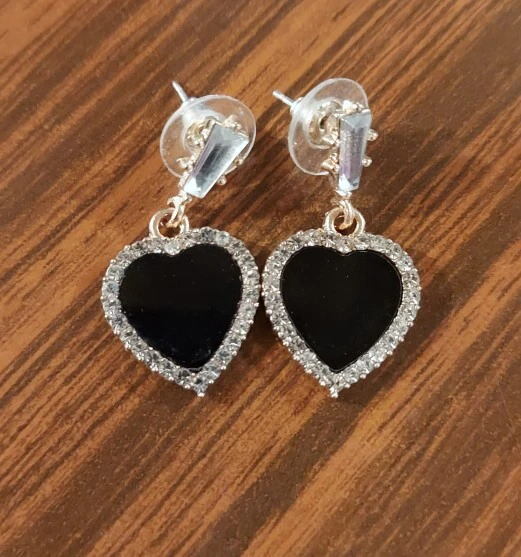 キラキラ★ラインストーン ダイヤモンド★ハート形ピアス ブラックシルバー925