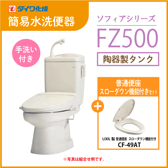 簡易水洗便器 簡易水洗トイレ 「ソフィアシリーズ」 FZ500-H00(手洗付)・スローダウン機能付普通便座セット ダイワ化成