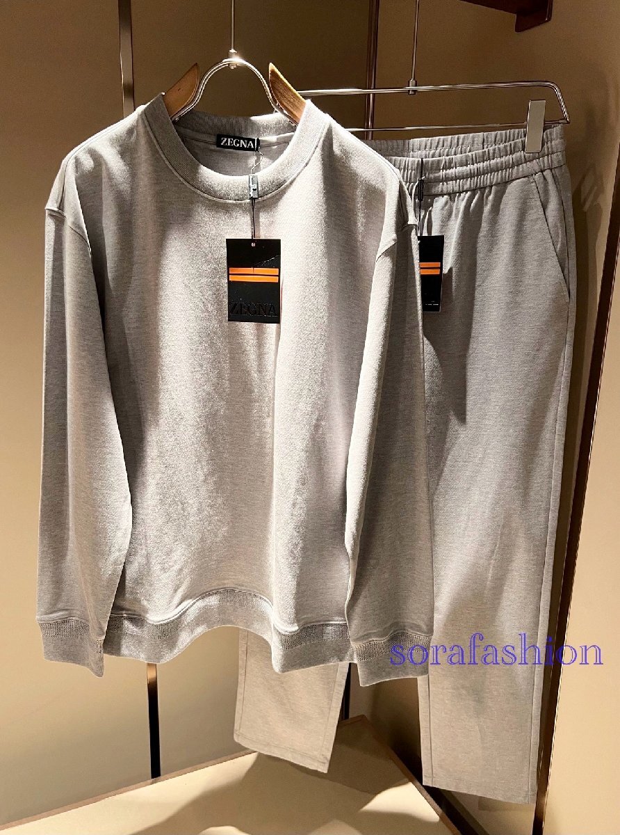 Zegna ゼニア メンズ 2点セット スウェットパンツ ロングパンツ ボトムズ 長ズボン 長袖T-シャツ スポーツウェア カジュアル ゴムウエスト 秋冬 イタリア コットン