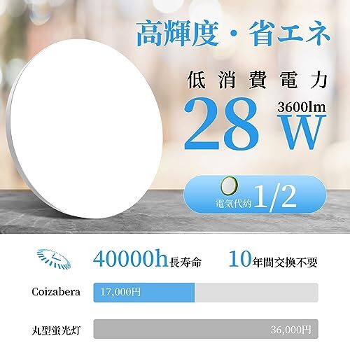 「Coizabera」LED シーリングライト 6畳 28W 3600lm 2個セット 調光調色 リモコン操作 スマホAPP操作