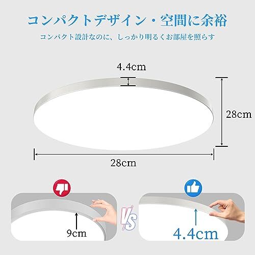 【省エネ・高輝度・薄型】ご注意:定格電圧は100V、使用時は100Vを超えないようにします。そうしないと、ライトがつかないなどのトラブルにつながります ○当LEDシーリングシーリングライトは高発光率LEDレンズを用いて、28Wの低消費電力で3600lmを実現、明るさは蛍光灯の2倍、電気代けいこうとうより半分節約、6畳~8畳の部屋の隅々まで明るく照らします。○厚み4.4cmの極薄デザインのため、シーリングライトがおしゃれに見えると同時に、部屋もより広く感じて、小さい場所に取り付けでも、圧迫間がありません。