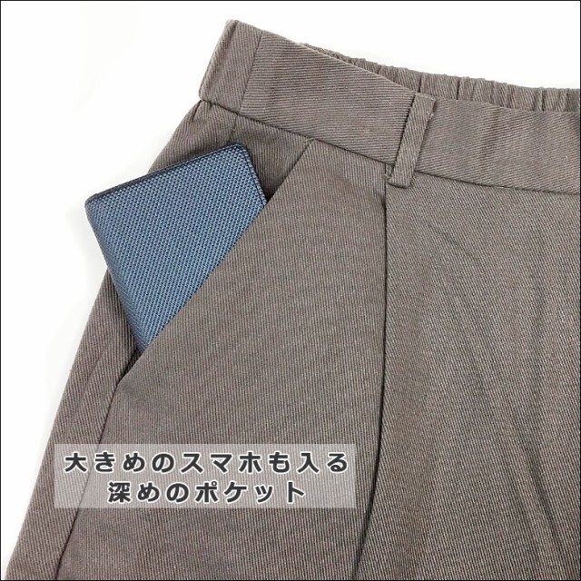 季節を問わず着回していただけるカツラギ生地を使用しており、 ゆったりしたシルエットで快適に穿きこなして頂けます。