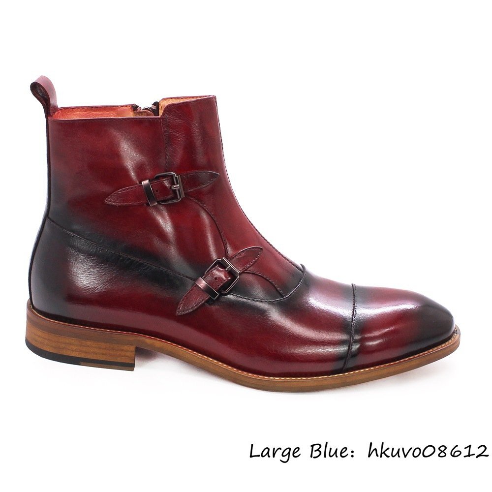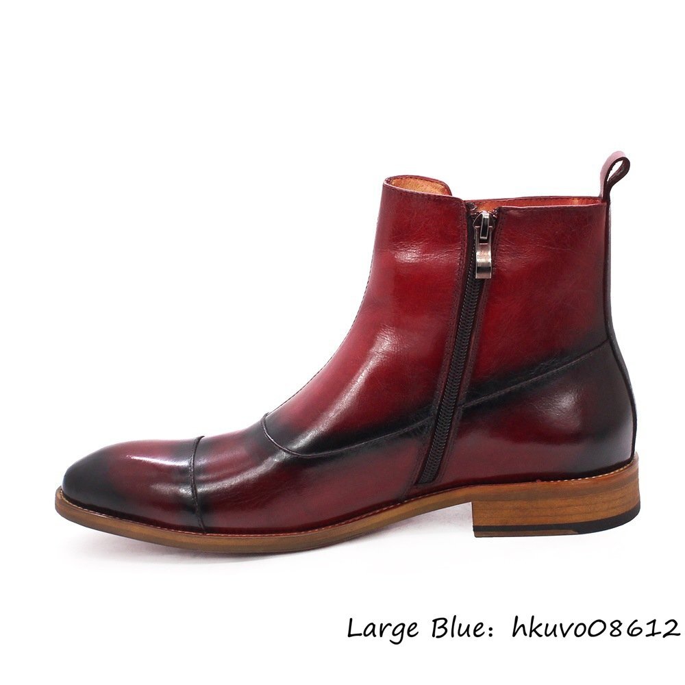 定価12万■ショートブーツ 最高級エンジニアブーツ マーティンブーツ 牛革ビジネスシューズ 職人手作り 本革 レザーブーツ レッド 25.5cm