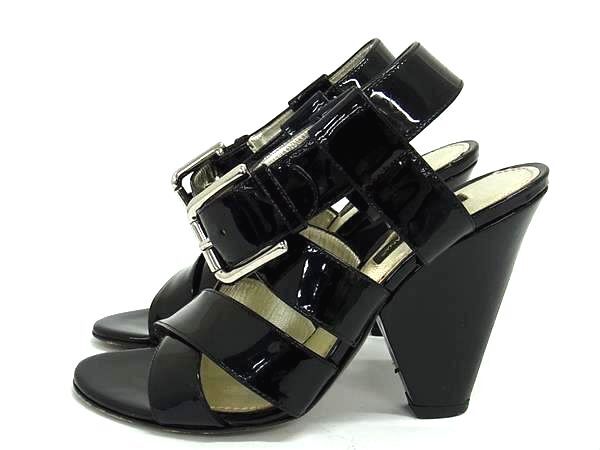 ■美品■ DOLCE&GABBANA ドルチェ&ガッバーナ パテントレザー ヒール サンダル サイズ35 (約22cm) 靴 レディース ブラック系 DK6282