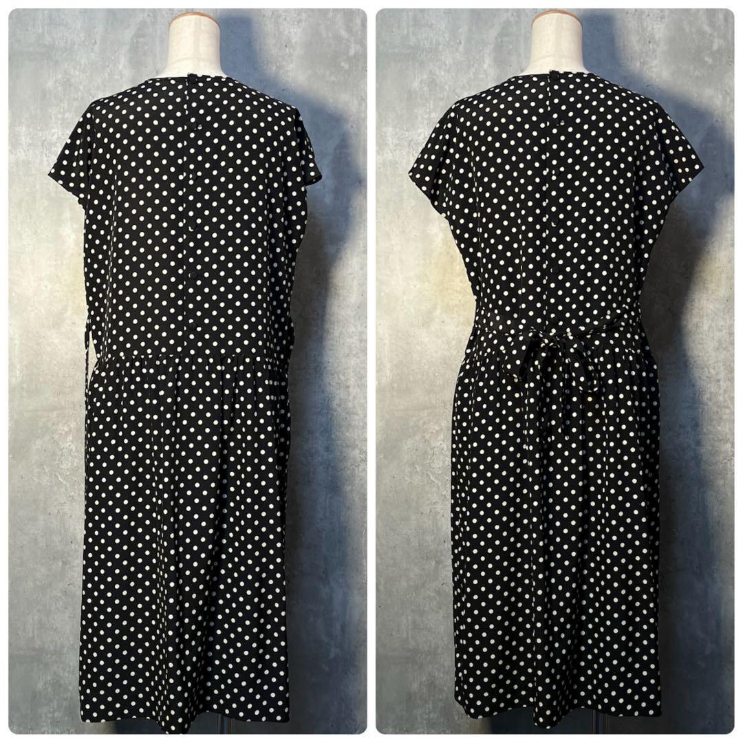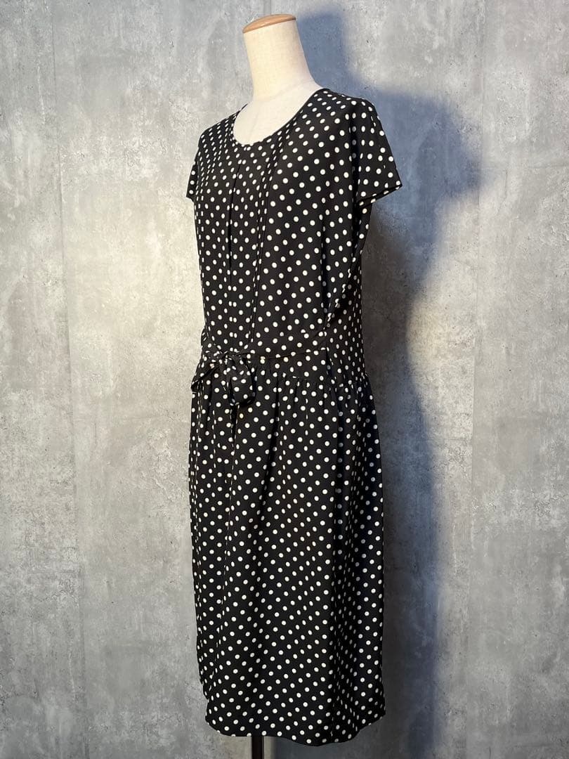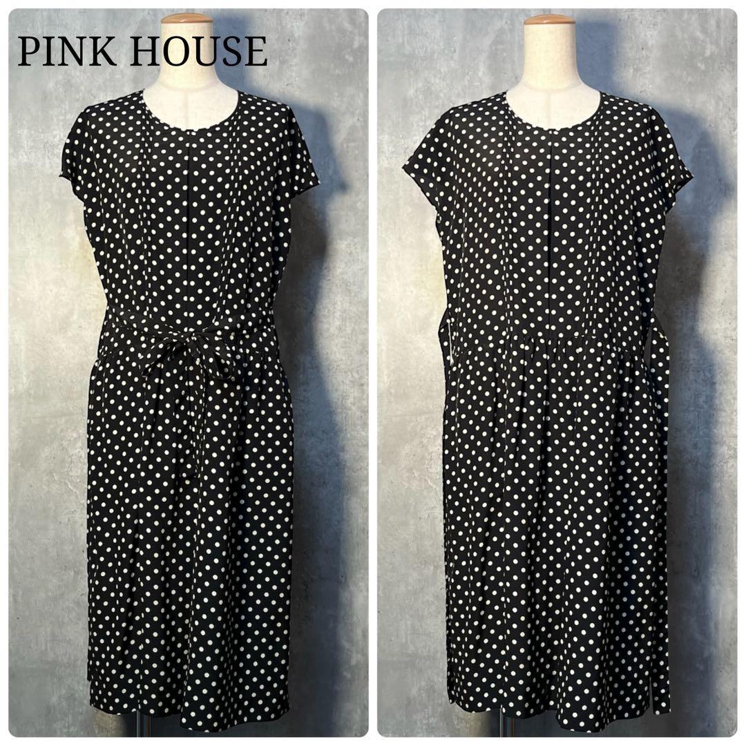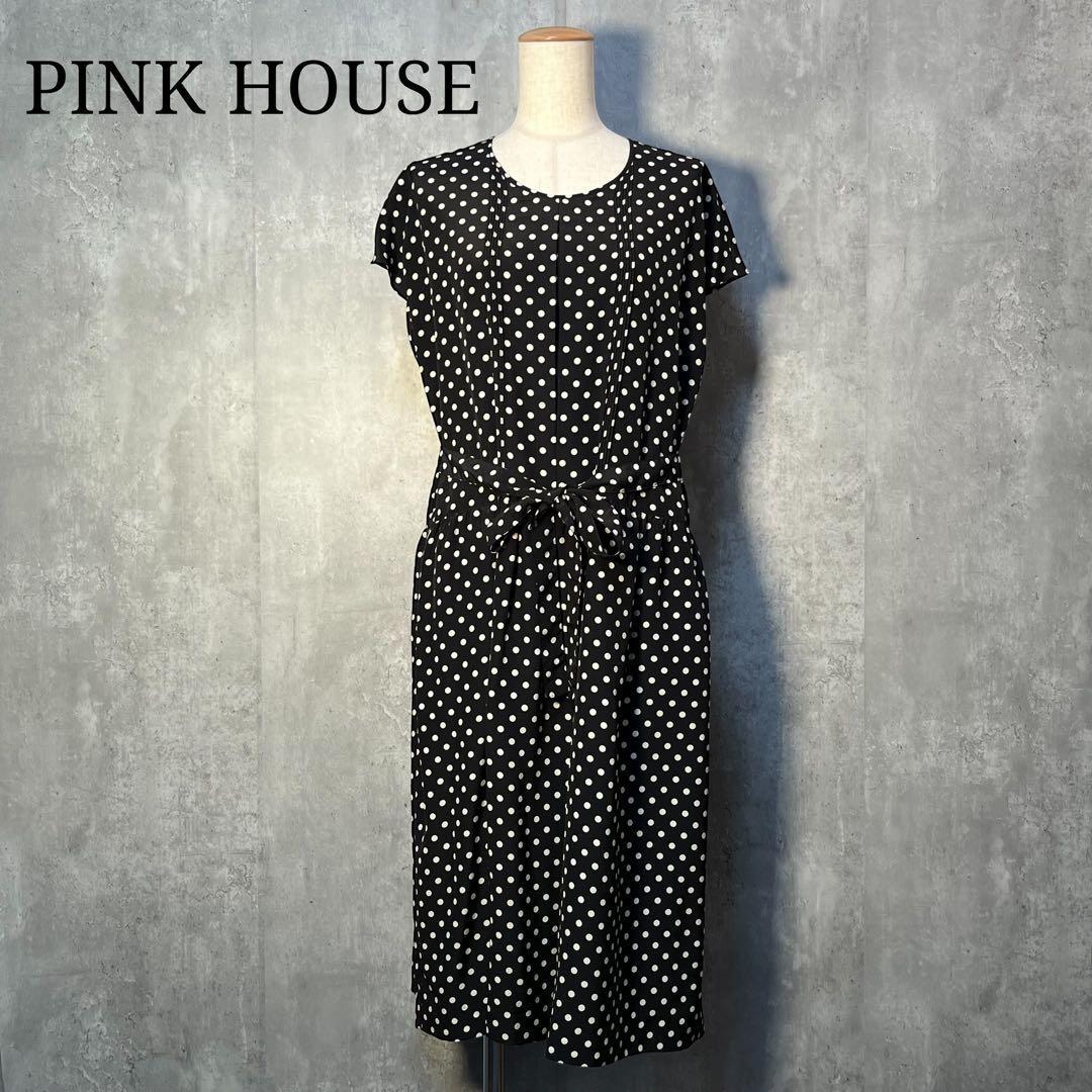 美シルエット☆ PINK HOUSE ピンクハウス ドット柄 ピンタックデザイン ロングワンピース ウエスト縫い込みリボンベルト付