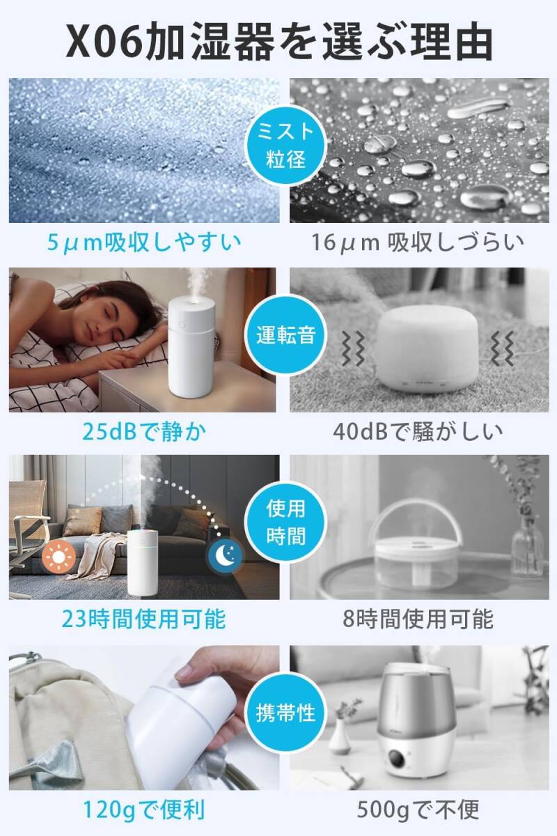 例えば、長時間のデスクワークでものどが乾きにくくなったり、車内での乾燥を和らげたり、香りを加えて休憩時間をリフレッシュしたりできます。
