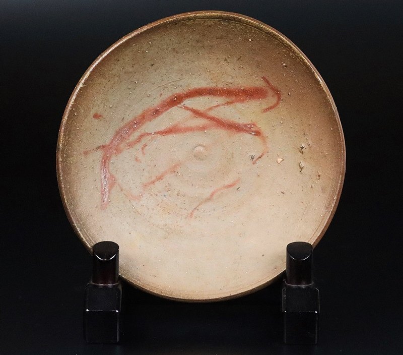 【 金重陶陽 】秀逸作 備前火襷丸皿 五 人間国宝 初代黒田陶々庵識箱 保証