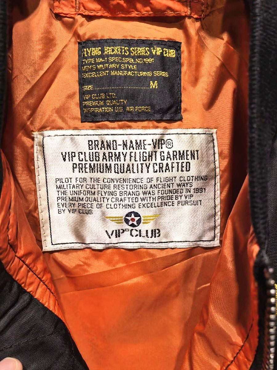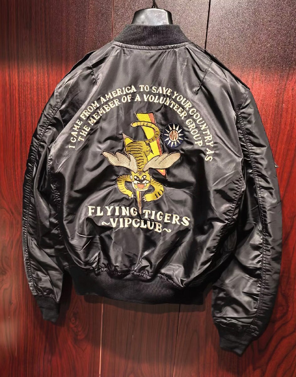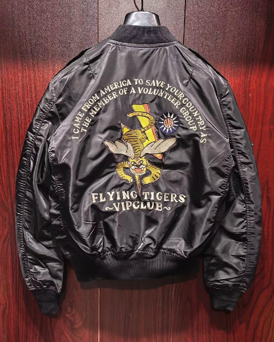 アメリカ発*VIP CLUB・FLYING TIGERS/フライング・タイガース・MA-1/フライトジャケット!MA-1の原型を踏襲し撥水防寒を備えた高機能ポリエステル生地を採用。多数の刺繍が特徴的な一着です。インナーなし薄手の仕様で今節に最適の一着です。