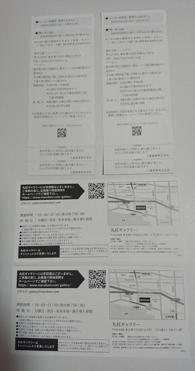 東洋文庫ミュージアム・丸紅ギャラリー 招待券 各2枚