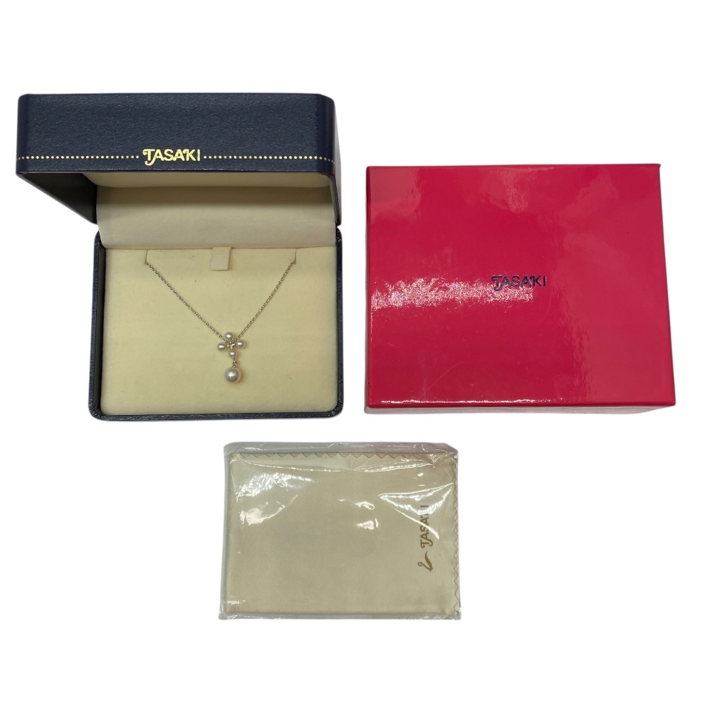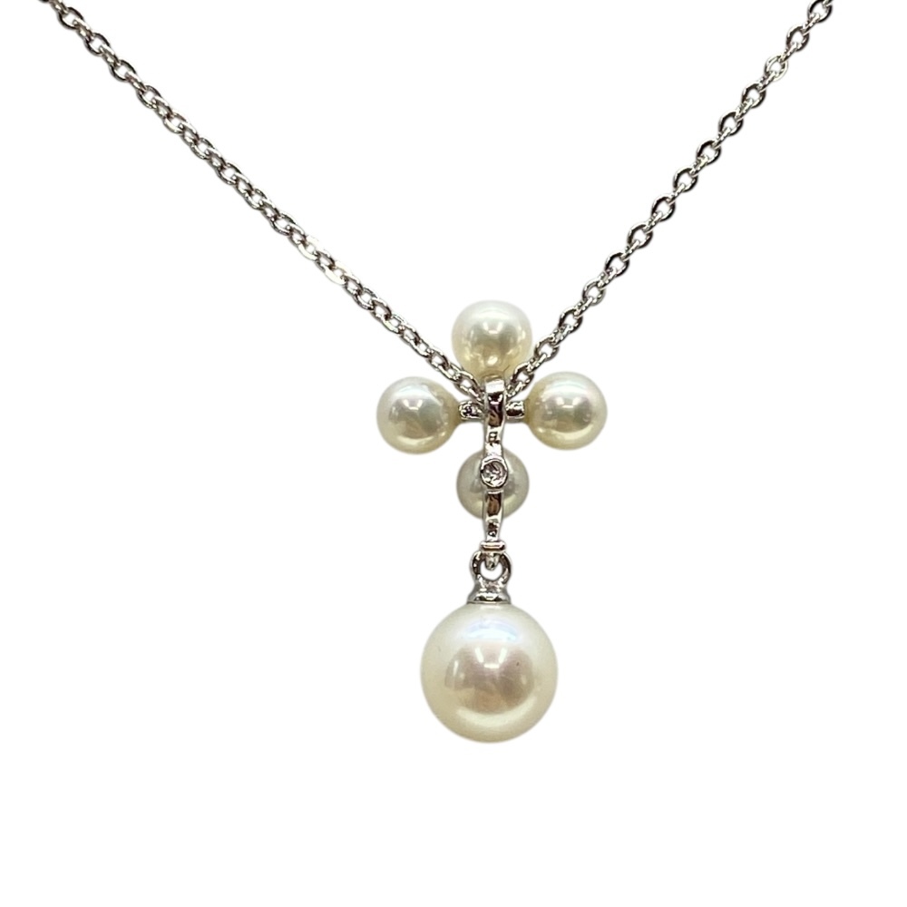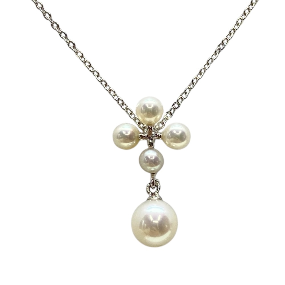 | 【サイズ】 | 全長:約40cm トップ:約2.2cm×1.1cm 真珠サイズ:6mm・3.6mm 重さ:2.4g |