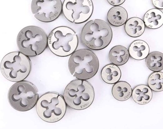 精密加工された、タングステン鋼製タップとダイス。 金型は、コア径の微調整を容易にするために分割されています。 セットには、メトリックのコースサイズとファインサイズが含まれています。