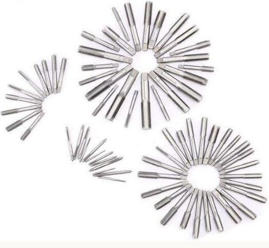 含める: - 2×タップホルダー(異なるサイズ)。 1×Tバータップレンチ。 2×ダイホルダー(異なるサイズ)。 35 xテーパータップ。 35 xプラグタップ。 35×死ぬ。 1×ポータブル収納ケース