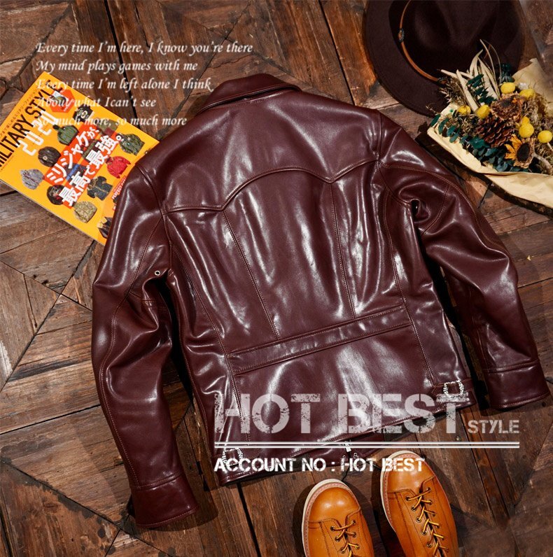 1.3mm ホースハイド 30's トラッカースタイル メンズ 革ジャン シングルライダース ワックス レザージャケット馬革Y1198/S~4XLサイズ指定可