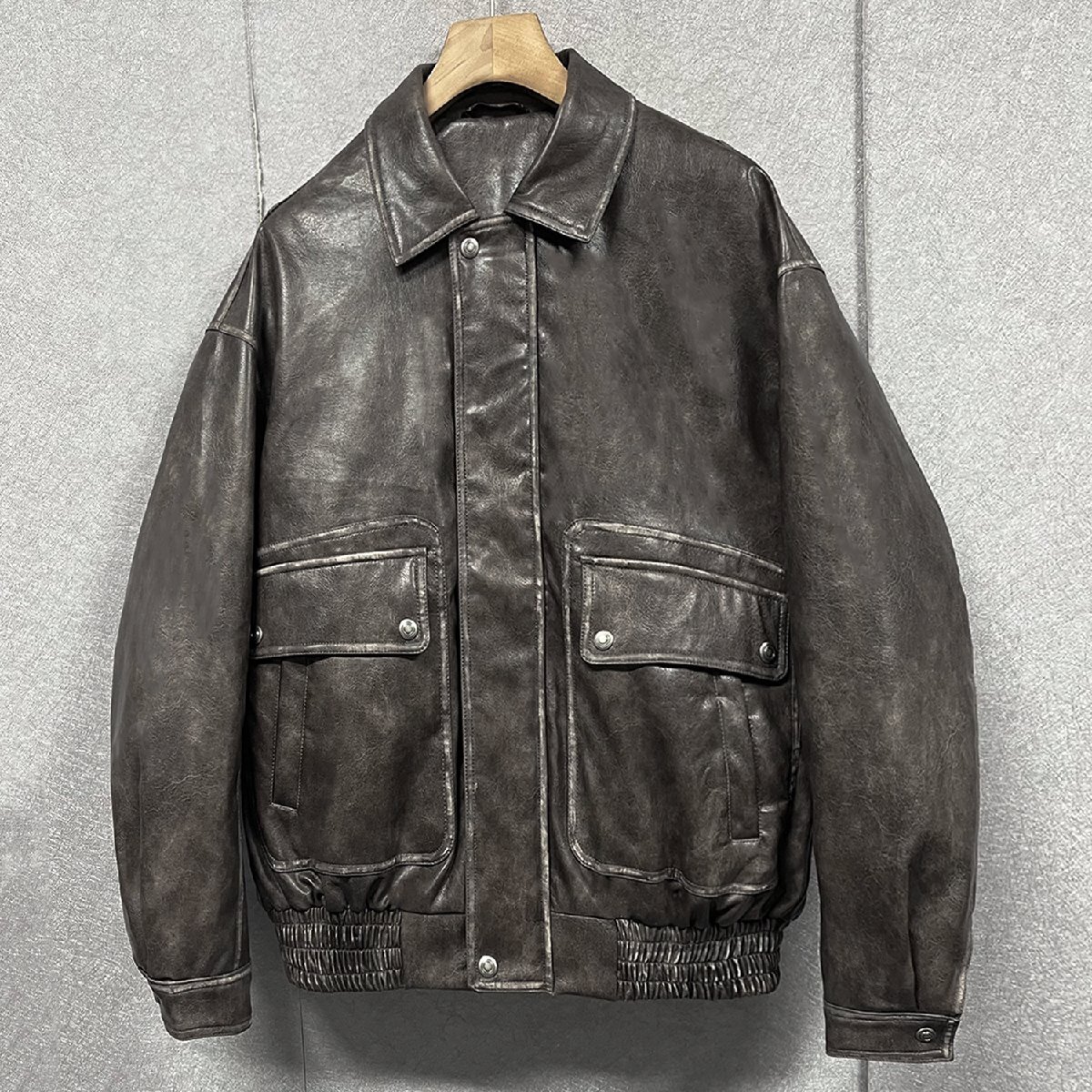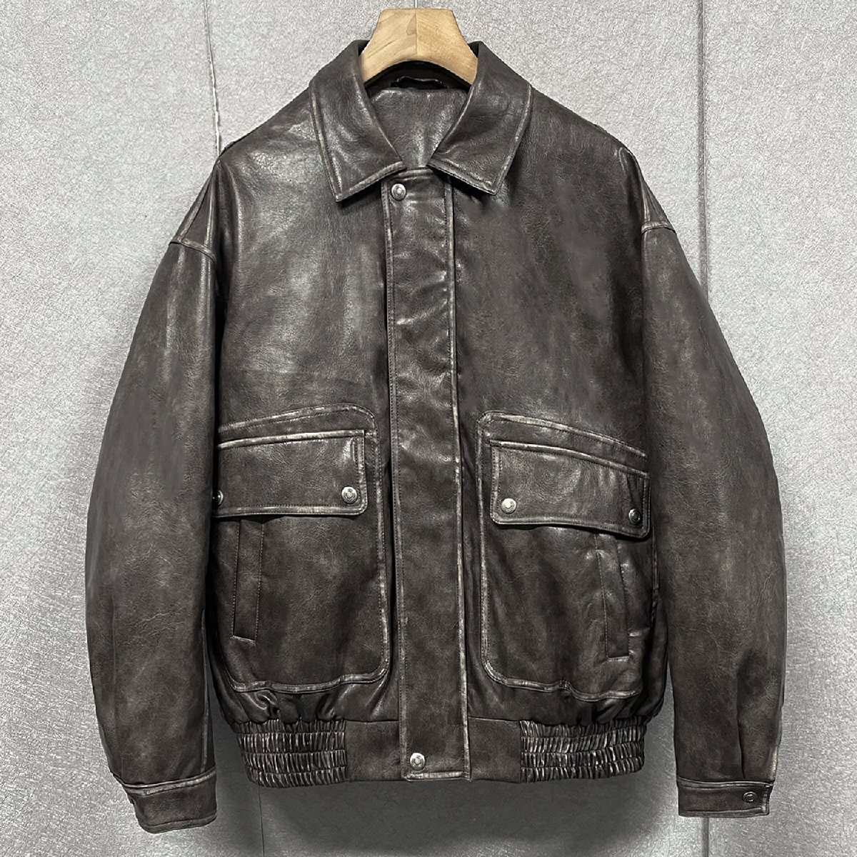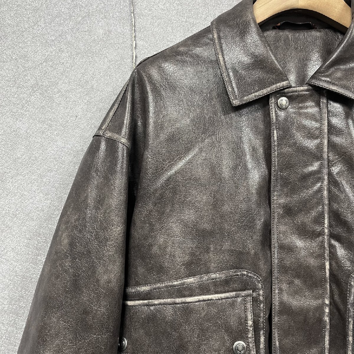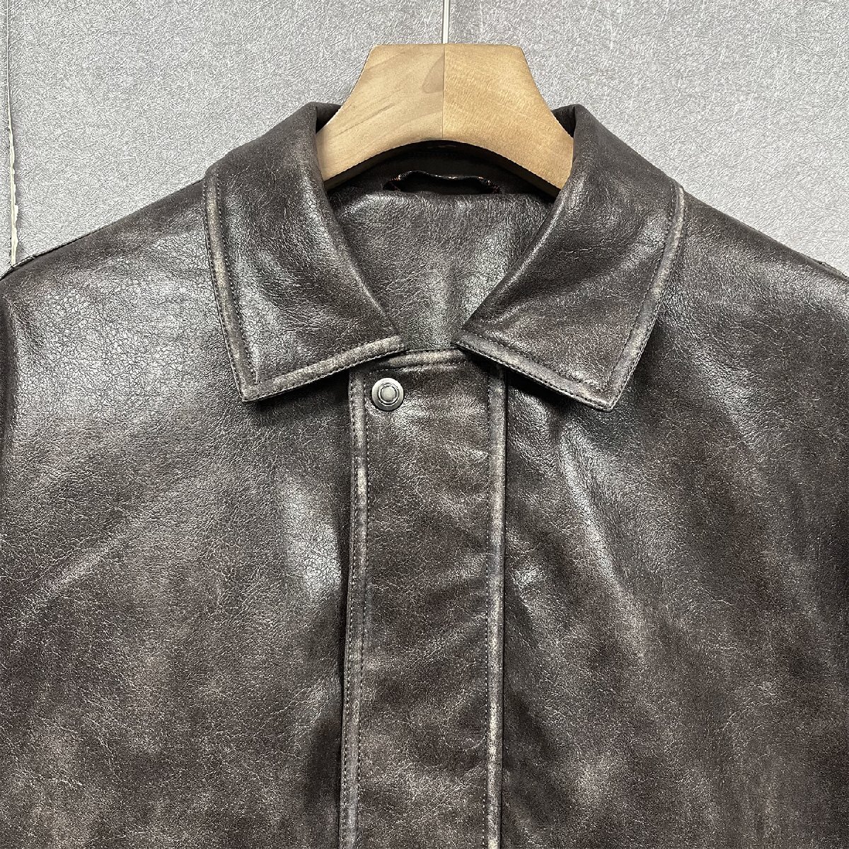 レザーの表面を採用、アメカジスタイルを完成します。前立てはジップ&スナップボタンの二重仕様で、首元までファスナー・ボタンをしめれば、体の熱気を有効に留めます。両サイドにポケットが付き、スマホや貴重品を安心に入ります。袖口はボタンの仕様で、雨や風から身を守る。