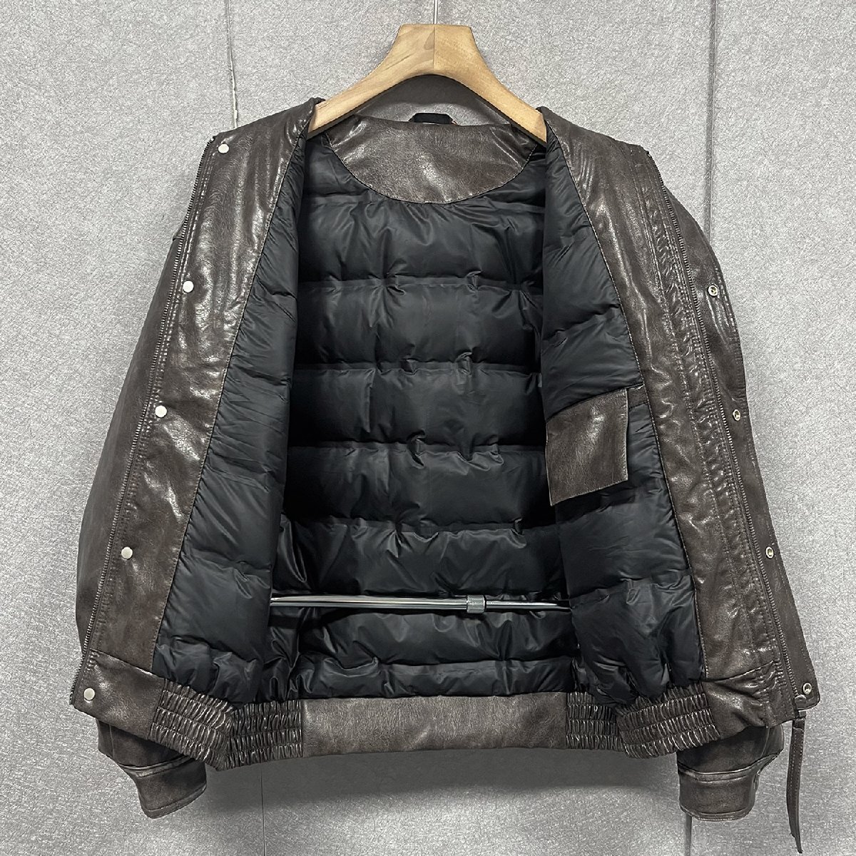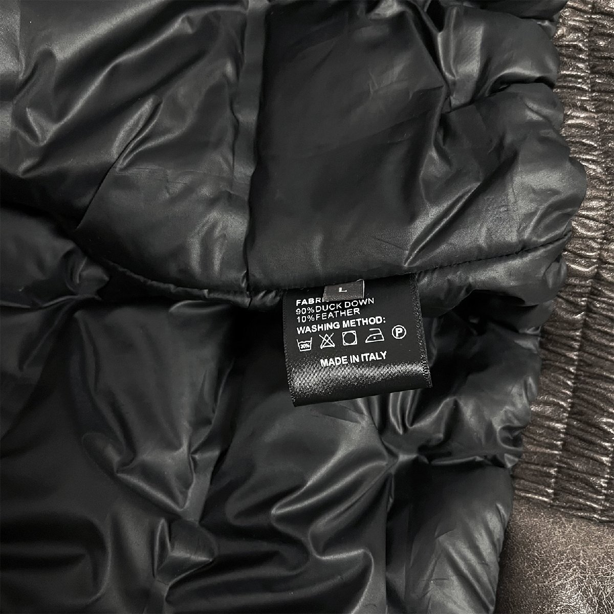 ダウンジャケット イタリア製造 ダックダウン90% 絶賛 保温 ソフト 撥水 折り襟 革ジャン レザージャケット ライダース バイク SIZE:M