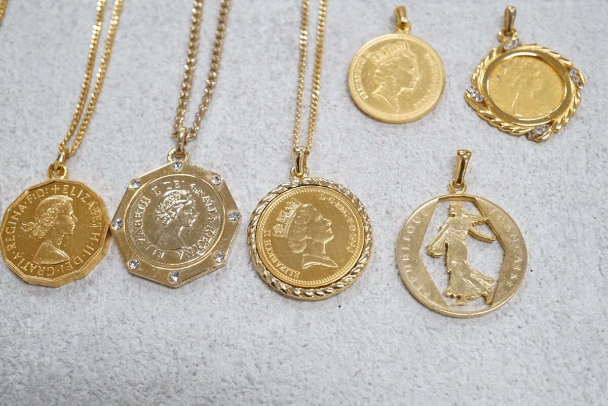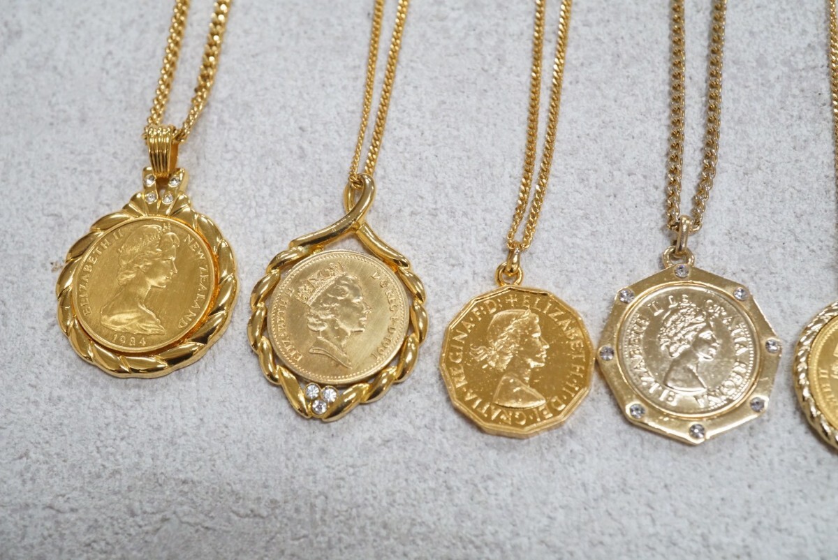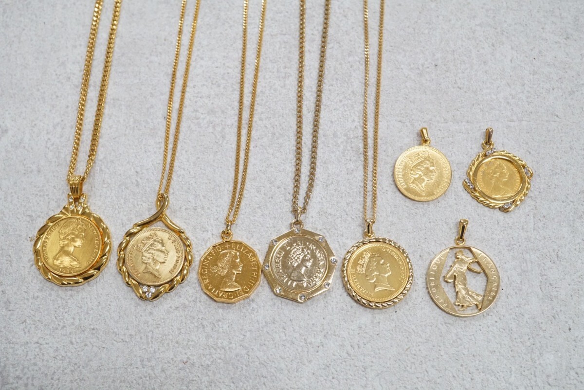 B428 コイントップ エリザベスなど レプリカ ネックレス ペンダント 8点 ヴィンテージ アクセサリー 大量 まとめて おまとめ まとめ売り