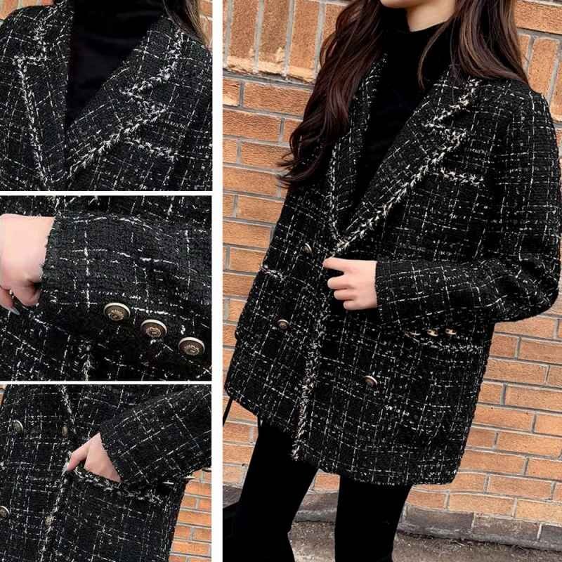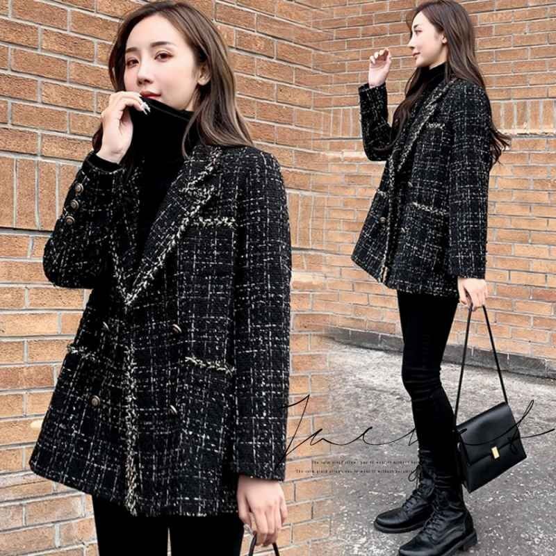 トレンド感のあるツイード風素材をセレクトしたテーラードジャケット