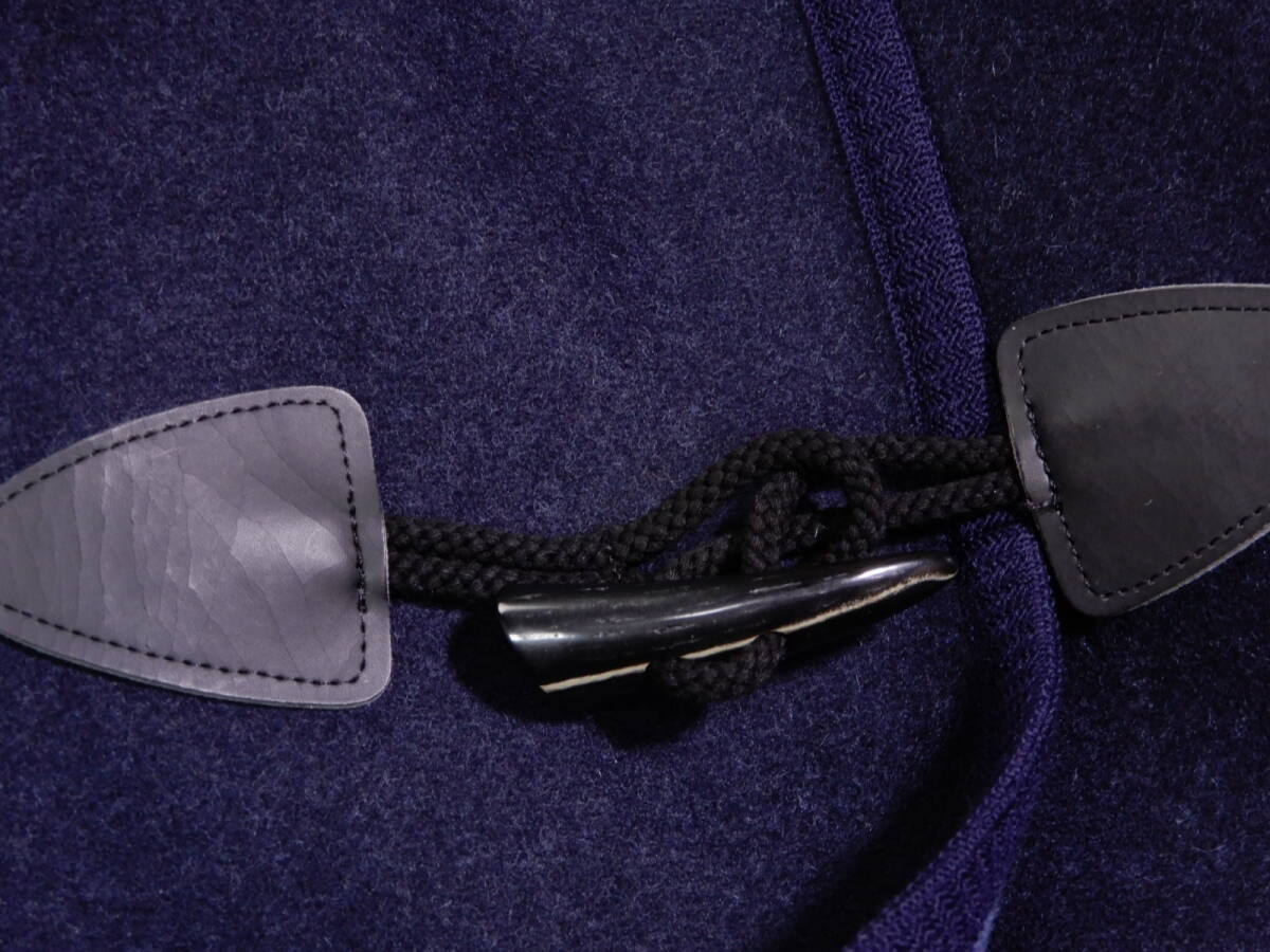 ダッフル定番のトグルボタンは高見えするしっかりした作りで、制服用としてはもちろん、普段使いにも違和感なく着られる