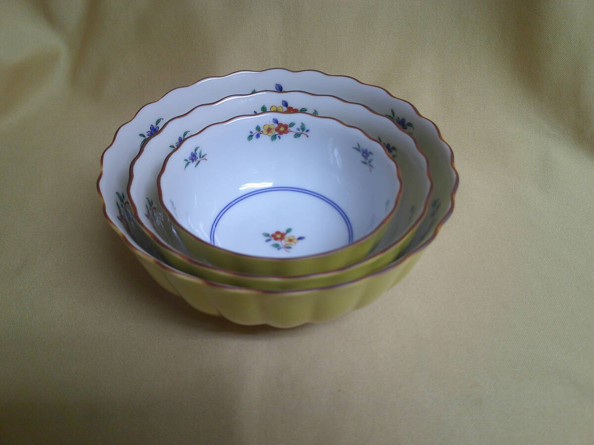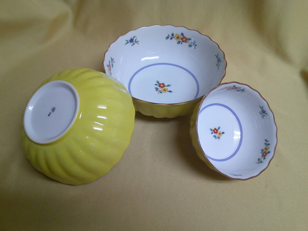 橘吉の三ッ組鉢 {約/大:径17、5cm高さ6、8cm 小:径11、5cm高さ5cm}、黄地小花です。箱はありません。 < 税込み送料 佐川宅配便扱い > 関東・東北・信越・北陸・東海・近畿580円 四国・中国750円 九州・北海道880円/沖縄・離島の方はゆうパック着払いになります。離島の方はお住いの県と離島とお知らせ下さい。どうぞ、よろしくお願い致します。 ----------- ☆ ☆ ------------------------ ☆☆☆ とても切なるお願い ☆☆☆ ボランティア支援の一環として、宅配便送料 の一部は出品側で負担しています。主な出品は日用品です。テーブルウエアをお求めの方は自己紹介をご一読の上、ご検討下さいますようお願い申し上げます。 1 宅配業者・方法は当方指定だけでご了承下さい{着払い代引等も非対応です}。2 落札後のお問い合わせやご要望等{着荷時間帯のご指定を除き}には 、お応えできかねますのでご質問欄からお願い致します。 3 まとめて取引における宅配送料は200~500円加算を目安にされて下さい{定形外やレタ ーパックライトといった宅配以外との同梱は別途料金となります}。4 お取り置きや領収証の発行は承れません。5 発送は月・水・金曜の週3日間になりま す。商品到着をお急ぎの方や直近着荷のご指定はご遠慮下さい。尚、割れ物は「宅配業者の破損なき梱包基準」をクリアした荷造りしてお届け致します。 ☆☆