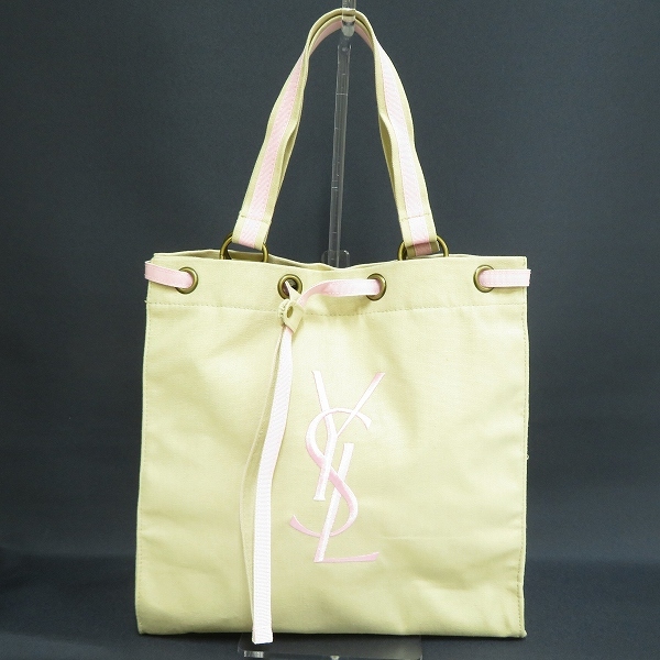 #ab イヴサンローラン Yves Saint Laurent トートバッグ ベージュ ピンク キャンバス ロゴ 刺繍 レディース [962566] k01