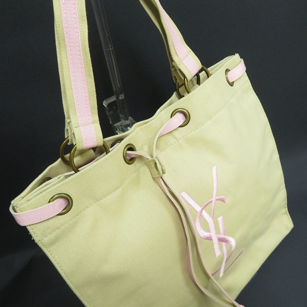 ●商品名(タイトル):#ab イヴサンローラン Yves Saint Laurent トートバッグ ベージュ ピンク キャンバス ロゴ 刺繍 レディース [962566] k01