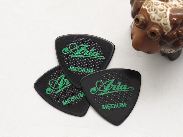 [新品・追跡便] Aria ギターピック3枚 ラバーグリップ/トライアングルシェイプ/セルロース製/MEDIUM 0.75mm 黒 日本製 MADE IN JAPAN.