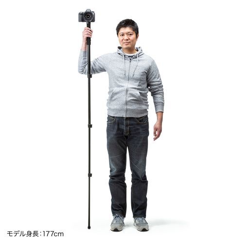 ※配送の送り主はサンワサプライ(株)と記載されています。沖縄・離島配送不可となります。 当店は正規販売代理店です。 特長 4段階伸長で軽量な一脚です。 長時間の手持ち撮影のサポートに最適です。 流し撮りのサポートに便利です。 狭い場所でカメラを安定させて撮影できます。 デジタル一眼レフカメラやビデオカメラに対応しています。 クイックレバーにより、すばやい長さ調節が可能です。 <脚の伸縮方法> ・ 脚の長さはクイックレバーのロックを解除して調節をします。 ・ 固定する場合はクイックレバーを突き当てまで倒しロックします。 携帯に便利な収納ケース付きです。 気をつけておりますが、タイミングによっては在庫切れの場合があります。 仕様