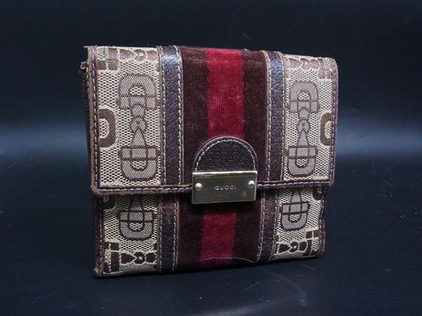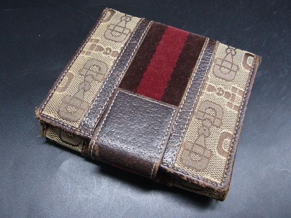 GUCCI グッチ キャンバス×レザー 二つ折り 財布 ウォレット 札入れ 小銭入れ ブラウン系 DL0091