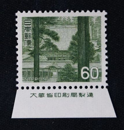 ☆出品商品名→ 新動植物国宝図案切手『延暦寺根本中堂』60円/大蔵省印刷局銘板付 NH美品