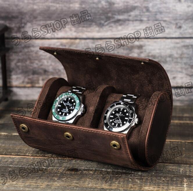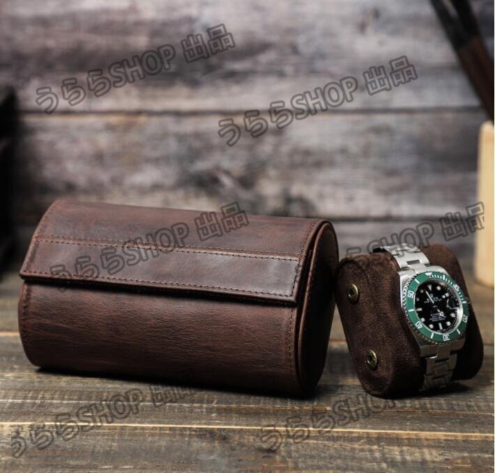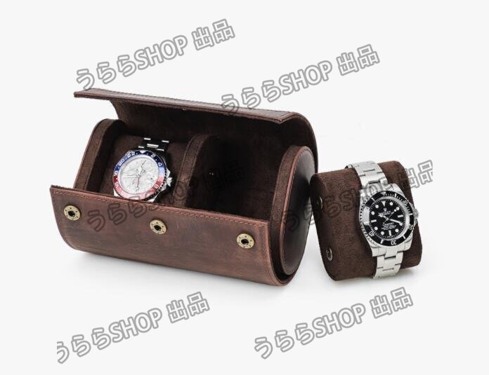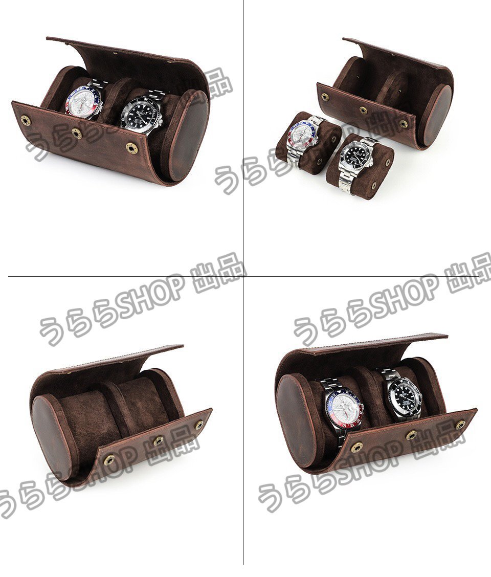 ヴィンテージ腕時計ケース 2本収納 旅行用携帯腕時計収納ケース 牛革ウォッチケース xhw0077