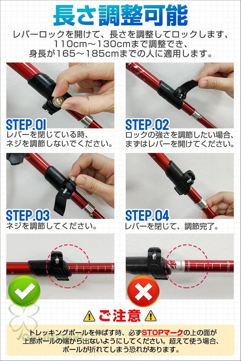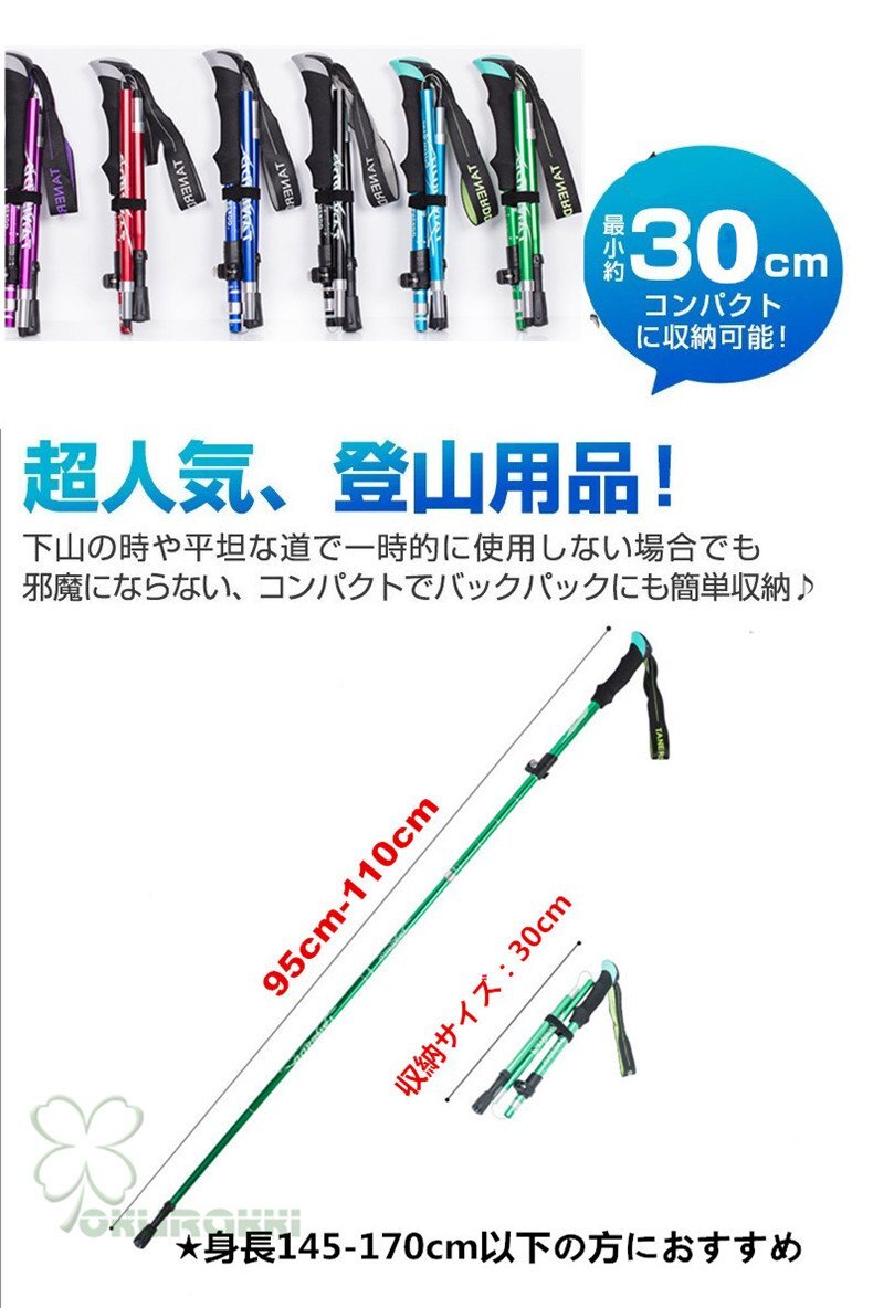 〔商品詳細〕■商品名:I型/五段折畳み式/トレッキングポール■材質:7075アルミ合金、EVA■サイズ:【全長:95cm-110cm】【収納サイズ:30cm】■重量:250g★身長145-170cm以下の方におすすめ ■数量:2本入■耐荷重:約100kg■製品内容:トレッキングポール×2、収納袋×2【商品特徴 】◎歩行にも登山にも使い勝手抜群のトレッキングポール◎組み立ても簡単で、長さの調整も可能◎軽量、コンパクトな収納は持ち運びにも便利◎レジャーのお供に最適なサイズ登山杖