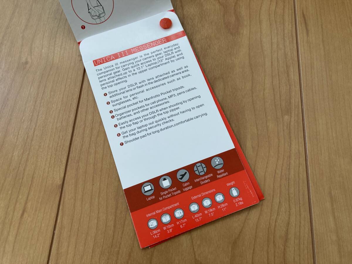 Manfrotto製のカメラバッグ、UNICA III メッセンジャータイプです。
