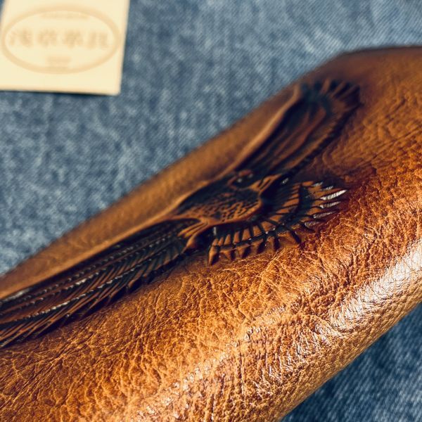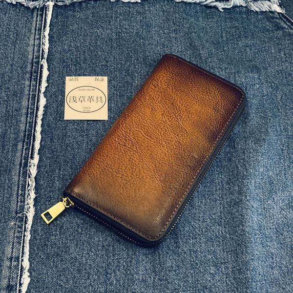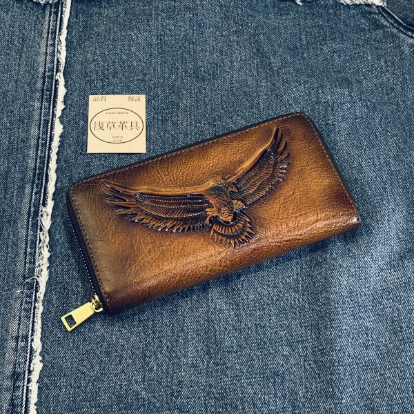 【浅草革具】メンズ財布 長財布 イーグル ラウンドファスナー 牛革 ヌメ革 1円 ハンドメイド ロングウォレット 新品 未使用 一円 ブラウン