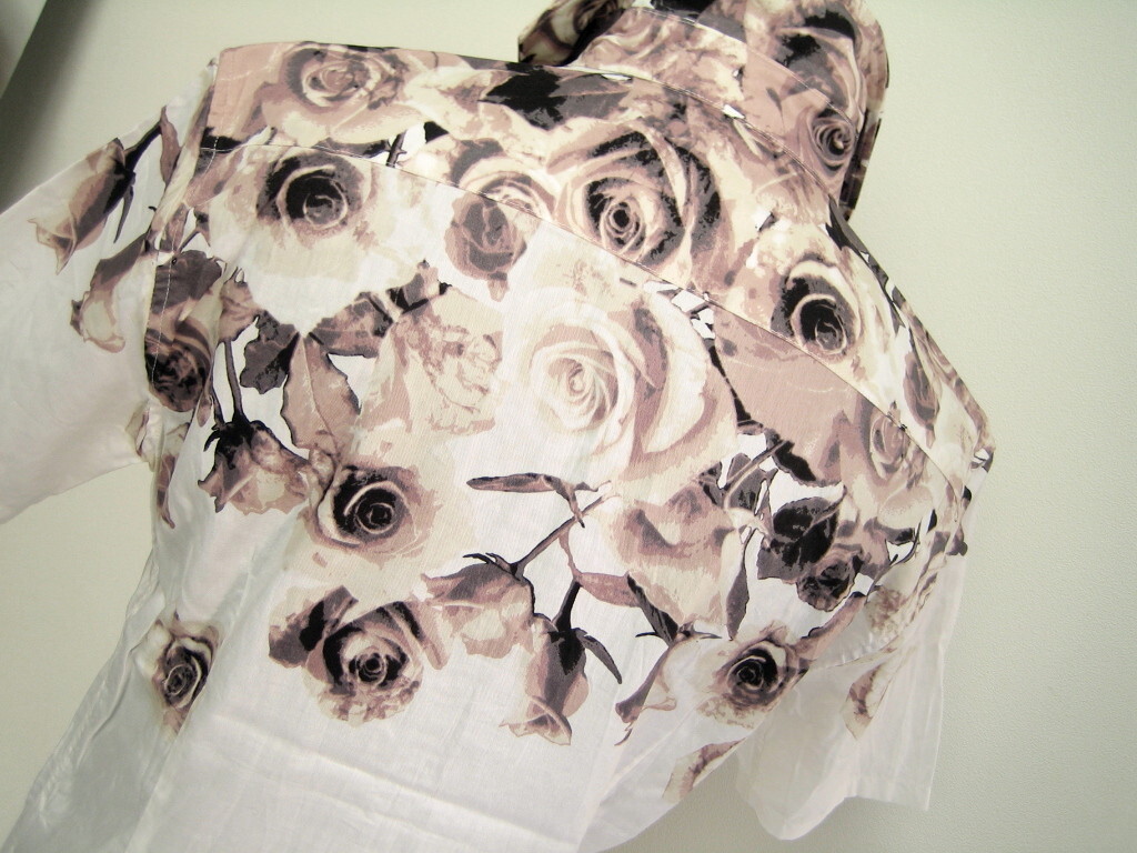 ナチュラルな手絞りしわ加工の薔薇プリント生地