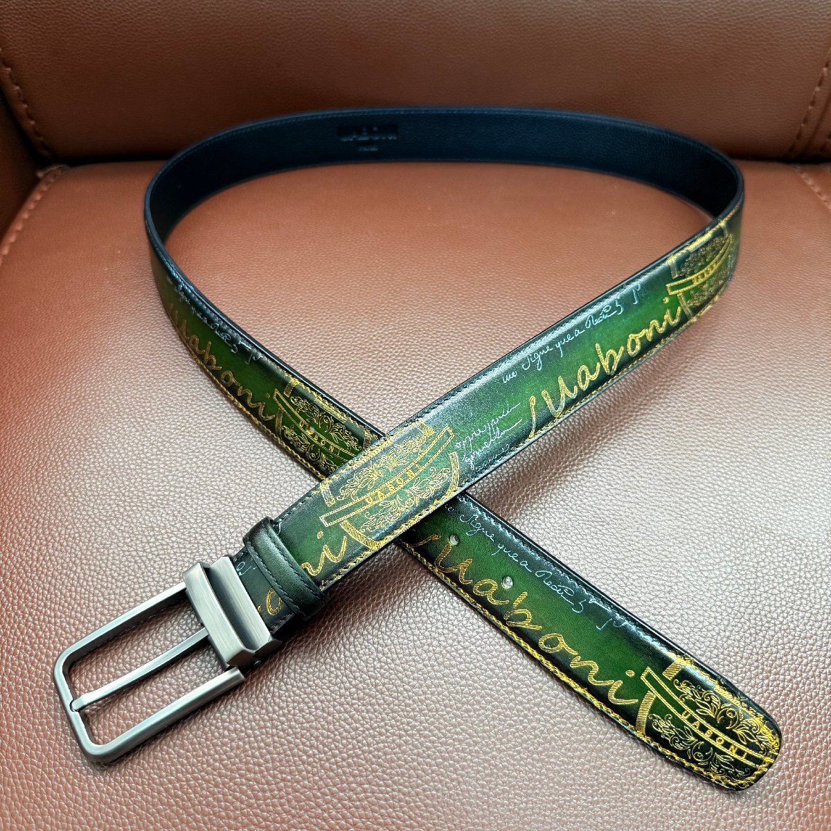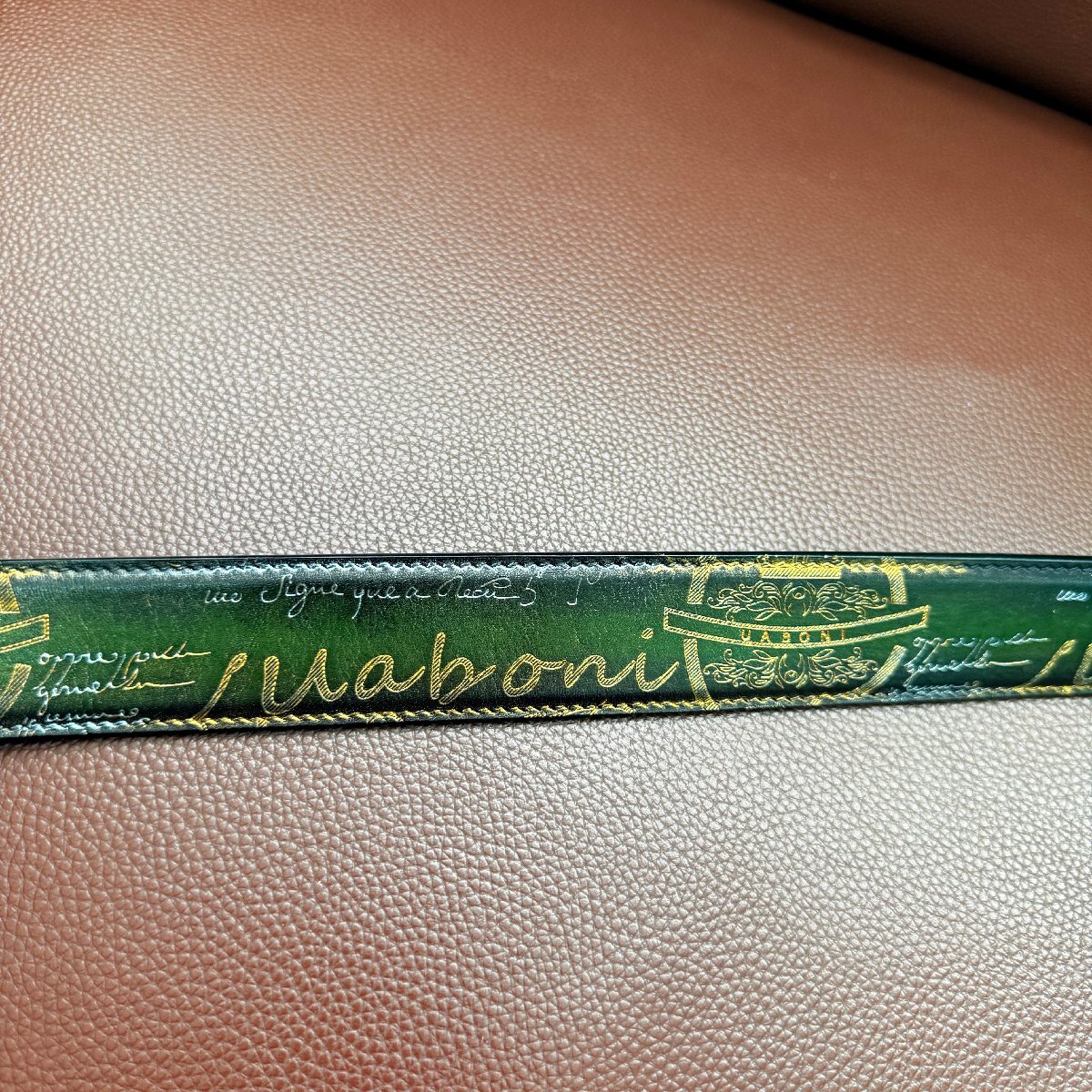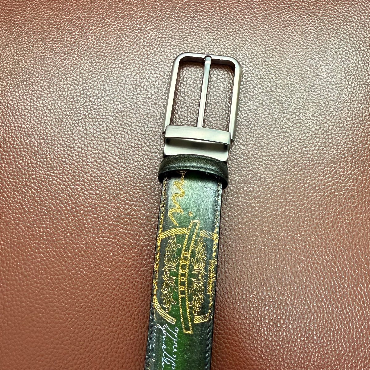 貴重品 EU製 定価9万◆UABONI*ユアボニ*幻のパティーヌ*ベルト◆本革 カーフスキン 手染 ゴールデン 調節可能 ビジネス 紳士 ベルルッティ