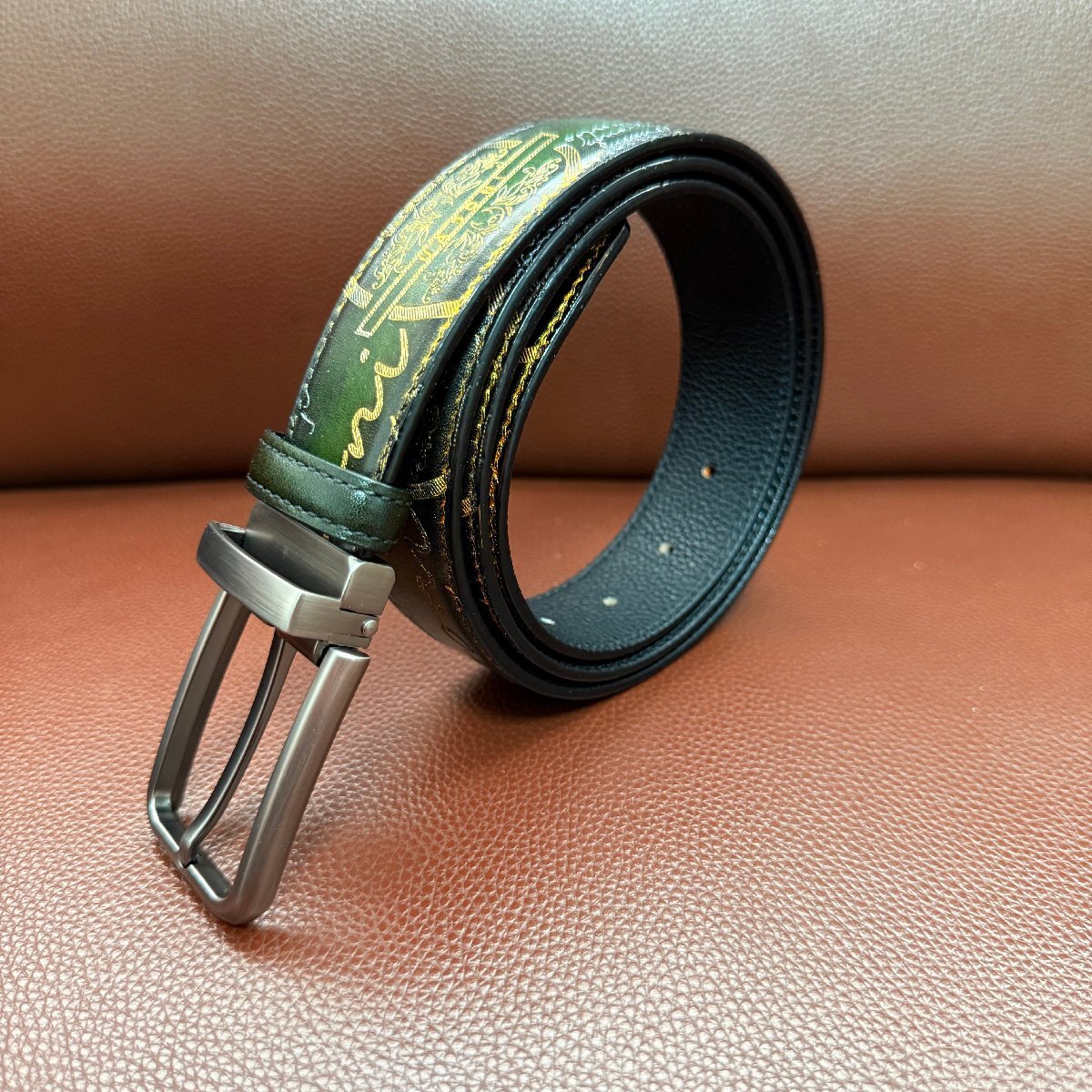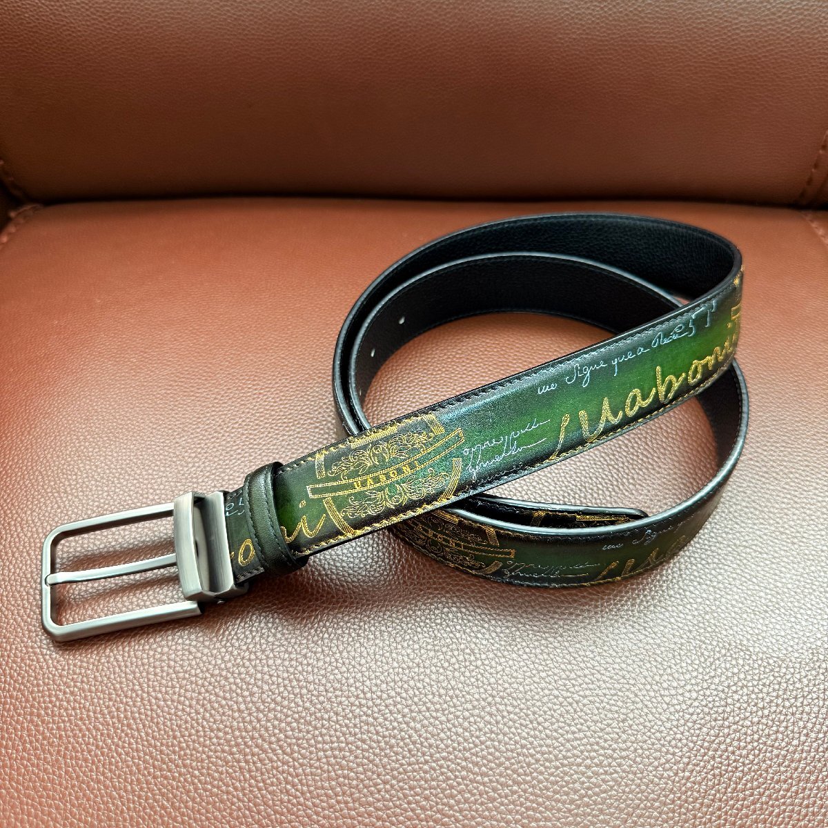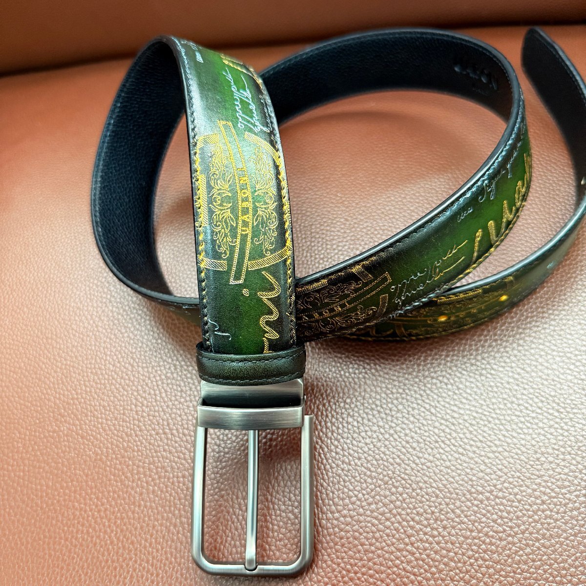 貴重品 EU製 定価9万◆UABONI*ユアボニ*幻のパティーヌ*ベルト◆本革 カーフスキン 手染 ゴールデン 調節可能 ビジネス 紳士 ベルルッティ