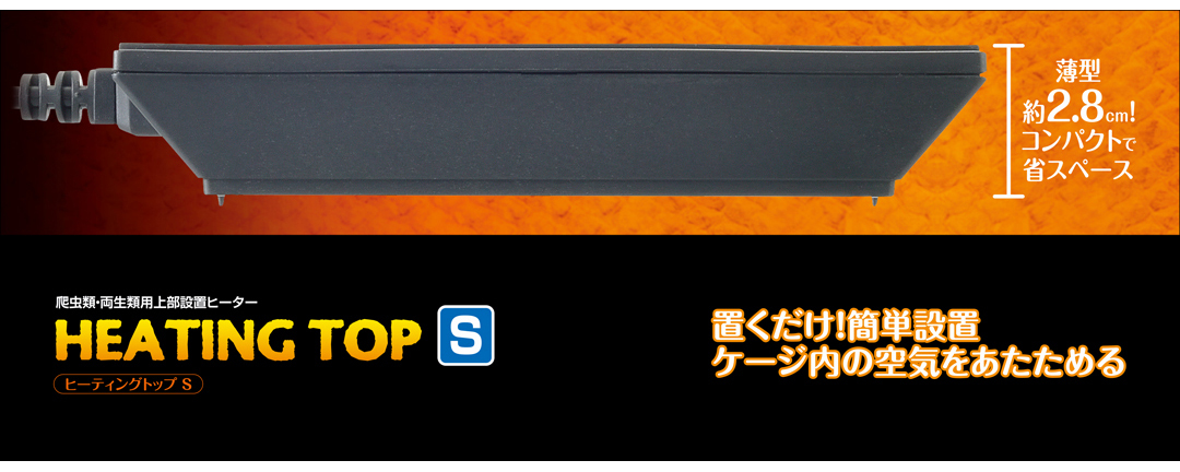 暖突に似ている上部ヒーターですが、ヒーティングトップのほうが保温能力が高く、カート管理画面置くだけなので使い勝手がいいです。さらに、サーモスタットでの使用もOKです!しかし、熱は下から上へ向かうので、当方はやっぱり地上性の種類、特にバスキングが必要な種類には温度勾配やホットスポット等様々な観点から照らしたところをあたためる集光型保温球での保温をおすすめいたします!