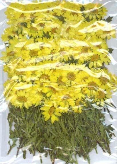 業務用 押し花 ノースポール 葉付き黄色染め 大容量 300枚ドライフラワー デコ レジン 封印