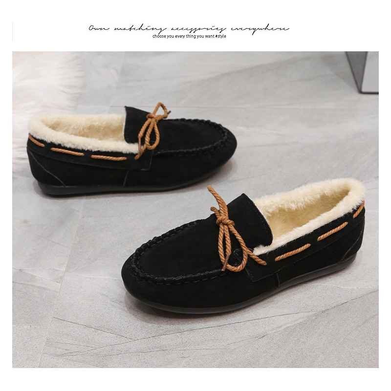 ・丸みのあるころんとしたデザインともこもこファー素材感が可愛いパンプス。